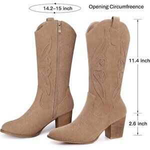 Suede Cowboy Boots for Women These retro women cowboy boots wide calf are made from high-quality suede leather, western boots women were so soft and comfy. Mid calf cowgirl boots for women, cowgirl boots extra wide calf, cowboy boots for women wide calf, womens cowboy boots mid calf, mid calf cowgirl boots, big calf cowgirl boots, anti-slip wood sole, low chunky heel to provide stability and support.