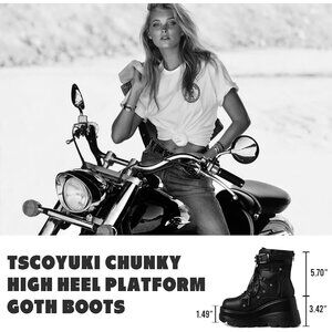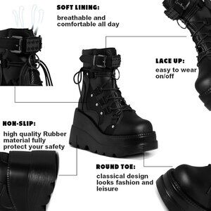 Ankle Boots Measurement: High wedge heel measures approx 3.54 in (9 cm), platform measures approx 1.5 to 2.16 in (3.8 to 5.5 cm). The measurements of goth platform boots may vary by size