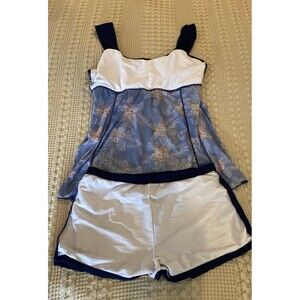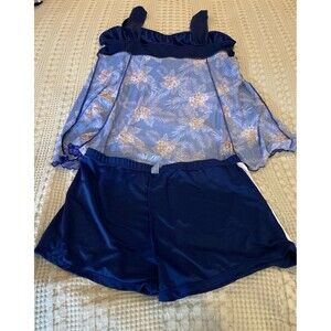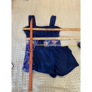 Women 2 Piece Modest Swimsuit Size 3X (fits like 2X) Navy Blue Floral Flattering