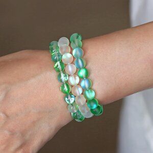 Dainty Set of 3 Stretch Bracelets: Elevate your style with this exquisite set bracelets with picture jasper, yellow jade, and black onyx. Experience the power of these natural stones in one irresistible package