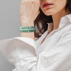 Women 3 PCS Map Stone & Howlite Natural Stone Beaded Stretch Bracelet