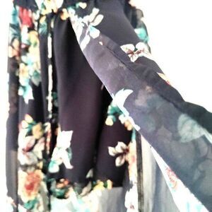 Beach Casual Art 2 Wear Summer Vintage Party---This beautiful blue floral lace print romper is perfect for women and juniors alike. The sheer overlay adds a touch of elegance to the dress shorts, making it suitable for any occasion. The romper is made of 100% polyester and features a sleeveless design, making it comfortable and stylish. The size is 4 and it is suitable for women of all ages. The romper is perfect for those who love floral patterns and want to add a touch of sophistication to their wardrobe.