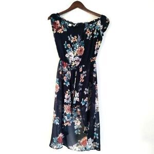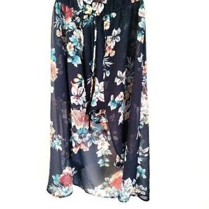 Women 4 Blue Floral Lace Print Sheer Overlay Dress SKORT Art 2 Wear Beach Romper