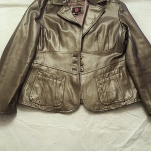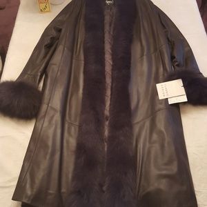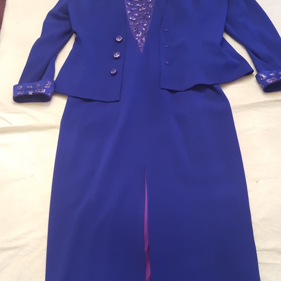 Purple Long Sleeve Gown with front split and 100% double acetate lining and jacket/purple and silver design on front of dress and jacket sleeve.