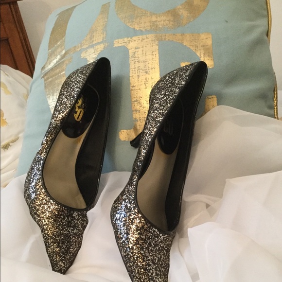 High heel black glitter pumps Used only once to a wedding In very excellent condition