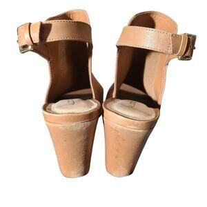 Women 8.5 ALDO Tan Leather Chunky Heel Peep Toe Slingback Bootie Heels Shoes