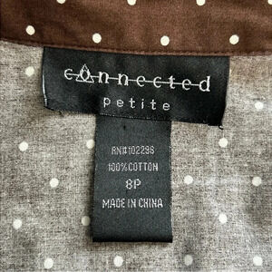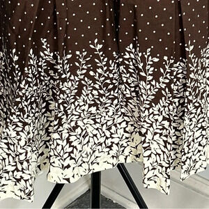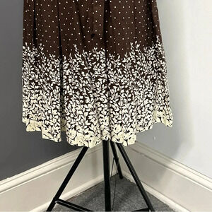 Connected Women 8P Brown Polka Dot Floral Dress Pleated Tie Sash Classic Dainty