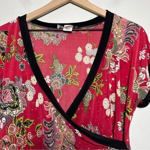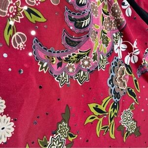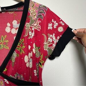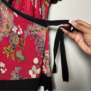 Women 90s Babydoll Top Medium Red Floral Whimsy Fairy Boho Tie Front Sequins USA