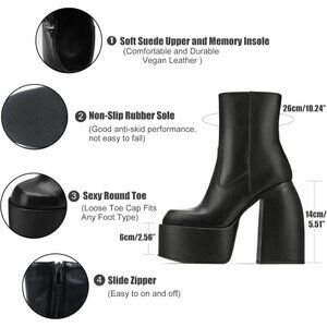 Measurement: The heel height of the mid calf boots is 14cm/5.51", and the height of the waterproof platform is 6cm/2.56"