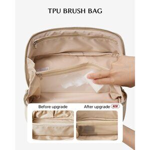 Quality Materials: Crafted from smooth, waterproof PU leather that’s easy to clean, with a durable polyester lining. The makeup brush compartment is made from clear, waterproof TPU to keep brushes neatly stored and visible.