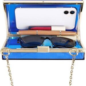 Match Clear transparent color, gold metal frame lined and hasp closure. Easy to match and suitable for any style of clothes.