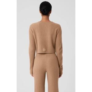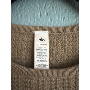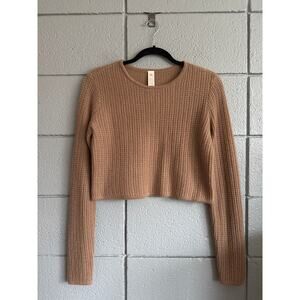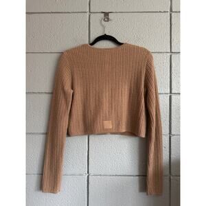 Women Alo Yoga Cashmere Plush Waffle Cropped Long Sleeve in Toasted Almond sz XS