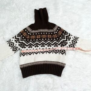 Women American Eagle Aztec Turtle Neck Knit Sweatshirt Brown/ White Extra Small