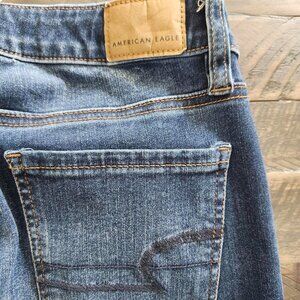 high-waisted, distressed, skinny jeans, denim, American Eagle, ripped, casual, fitted, cropped, trendy
