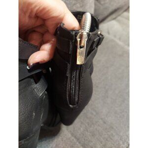 Women Ankle Boots Almond Toe Mid Heel Booties Chunky Block Zip Up Sz 8 M