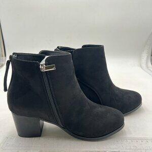 Women Ankle Boots Low Heel Boot Round Toe Zipper Booties Black Suede