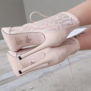 Women Ankle Open Toe High Heel Booties Lace Up Nude Color