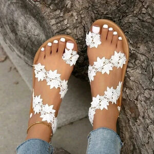 Women Appliques Decor Slingback Thong Sandals, Fashion Summer Flat Sandals