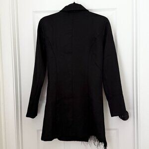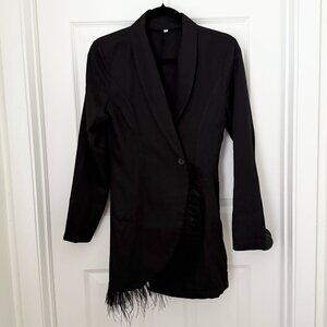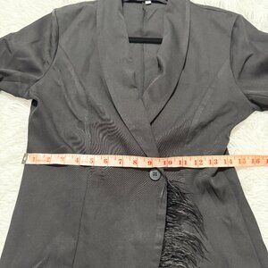 Women Asymmetric Tassel Wrap Fitted Tuxedo Blazer in Black Size Small