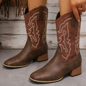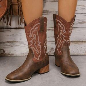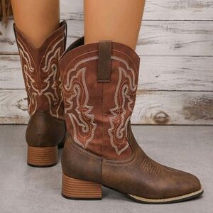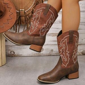 Women Autumn Outdoor Fashion Detailed Splice Embroidered Western Short Boots