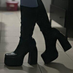 Measurement: The heel height of the knee high boots is 14cm/5.51", and the height of the waterproof platform is 6cm/2.56"