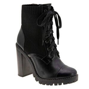 BCBGENERATION Womens Black Stretch Cushioned Lug Sole Lace Pilas Cap Toe Block Heel Zip-up Booties 7.5 M