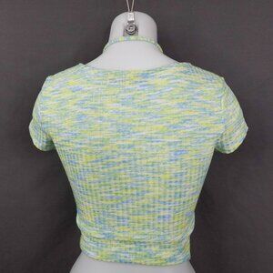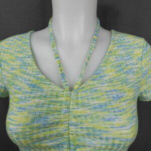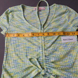 Women Baby Tee Top Small Green Y2K Cropped Knit Ribbed Drawstring Statement