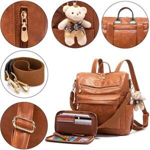 SPECIAL DESIGNS: Two zippers design on main bag. Bear doll accessories looks more cute. Multipurpose design easy conversion handbag backpack purse and shoulder, you can use it as backpack, top handbag or shoulder bag.