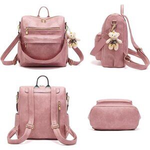 SPECIAL DESIGNS: Two zippers design on main bag. Bear doll accessories looks more cute. Multipurpose design easy conversion handbag backpack purse and shoulder, you can use it as backpack, top handbag or shoulder bag.