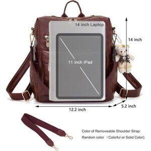 ROOMY:Backpack purse: 1 main compartment with 1 inner zipper pockets, 2 inner slot pocket, 2 front zipper pockets, 2 side pockets and 1 back zipper pocket. Multi-pockets are enough for you to hold your things like 14" or under laptop, iPad, A4 files, books, umbrella, sunglasses, cosmetics and other daily things, keep your daily items well organized.
