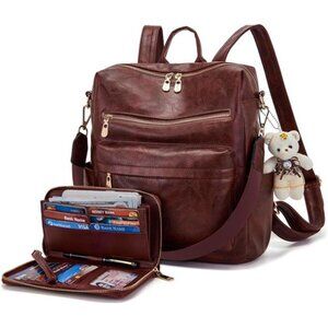 Women Backpack Multipurpose Set 2pcs Wine Red