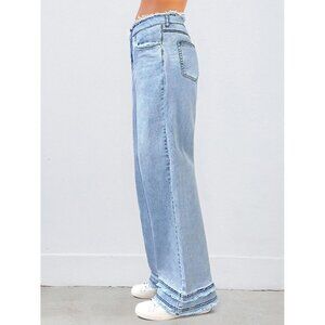Features: High rise, loose and baggy fit with a wide-leg silhouette, super stretchy spandex cotton fabric that molds comfortably to your shape. Frayed raw hem adds a trendy touch — always in style for modern, young fashionistas.
