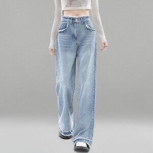 Women Baggy Jeans Y2K Stretch High Waisted Wide Leg Denim Trousers