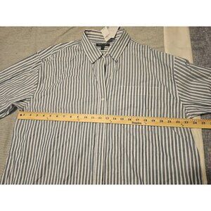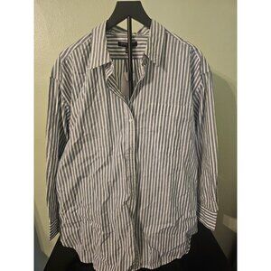 Women Banana Republic Business Casual Blue & White Pinstripe Button Down Size L