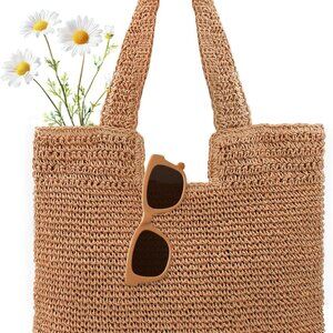 Women Beach Bag Boho Straw Tote Large Leak-Proof Lining Travel Purse