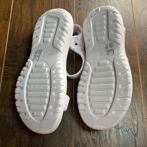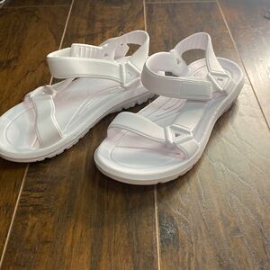• Flats • Slip-on styling; adjustable hook and loop ankle closure • Cushioned footbed • Non-skid sole • Manmade upper; manmade sole • Spot clean • Imported • Beachwear Sandals