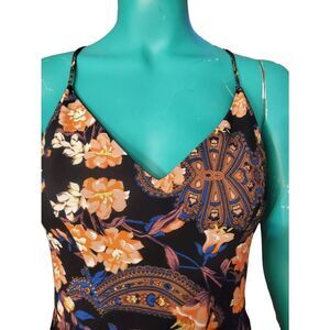 Women Bebe X Naven Black Floral Print Polyester Lined Cross Zip Back Dress Size