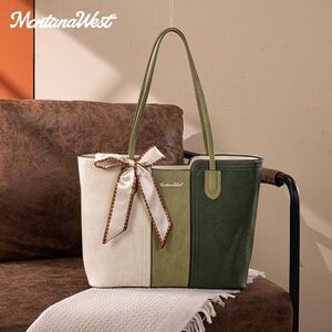 Women Beige Green Imported Vegan Leather Top Handle Polyester Lining Tote Bag