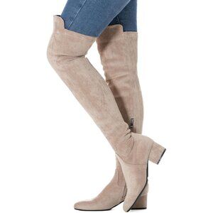 Women Beige\2 Ihch Suede Over the Knee Thigh High Chunky Block Heel Boots