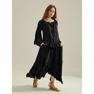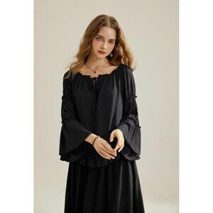 Women Bell Sleeve Tops Ruffle Off Shoulder Casual Loose Renaissance Blouse