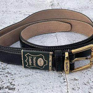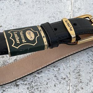 Women Belt Genuine Natural Leather Black Waistband Gold Pin Buckle Size 40 Inche