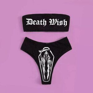 Women Bikini Set High Waist Skull Letter Pattern Swimsuit Rave Beach Wear