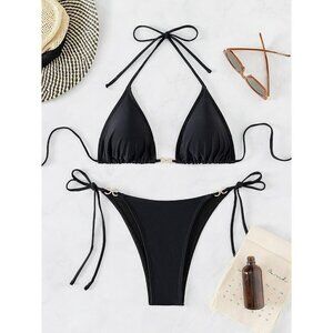 Women Black Cheeky Triangle Bikini Sets Sexy String Bathing Suit
