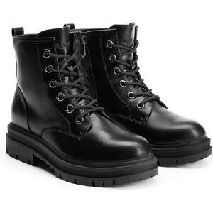 ⚡Women Black Combat Ankle Lace-up Platform Side Zipper Lug Rubber Sole Boots