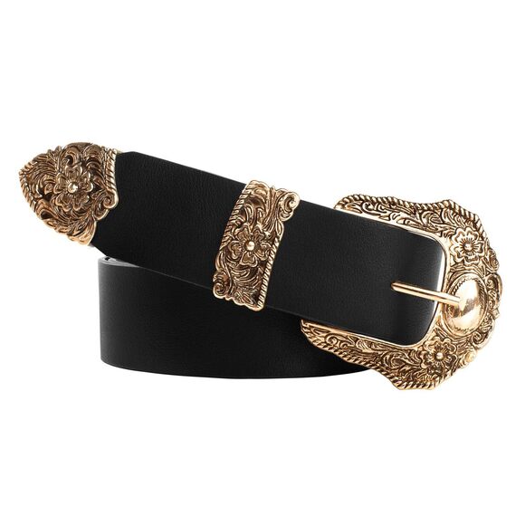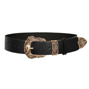 Brand New Vintage Pattern Apparel Belt; Size - Fit for Waist 36.5"-39.5"; Color - Pure Black Gold; Material - Leather; Style - Classic