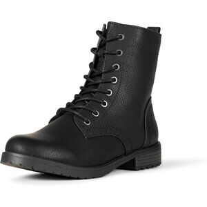 ⚡Women Black Faux Buffalo Grain Leather Metal Eyelet Lug-sole Combat Boot