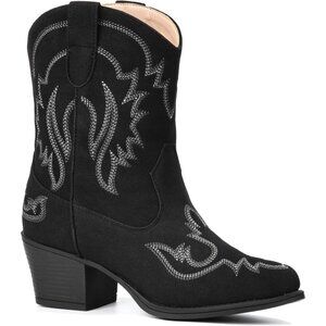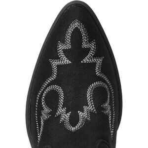 ⚡Women Black Faux Leather Ankle Cowgirl Pull-On Pointed Toe Short Western Boots