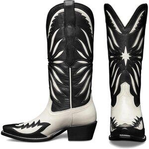 ⚡Women Black Faux Leather Mid Calf Knee High Pointed Toe Western Cowgirl Boots