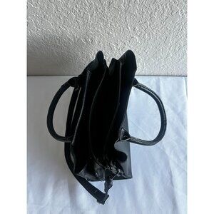 Women Black Faux Leather Satchel Bag With Double Top Handle Zipper Handbag