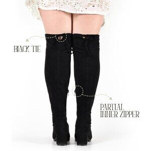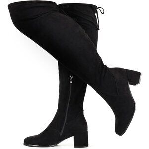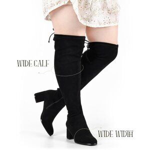 Easy-On, Flawless Fit: No more struggling! The smooth partial side zipper glides effortlessly over fuller calves. The thigh high boots plus size features a supportive block heel (2.5 inches) that distributes weight evenly, paired with a round toe for enhanced comfort. Stays securely in place without digging or sliding.